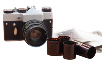 Fotografias antigas reveladas ou negativos que podem ser digitalizados para preservação.